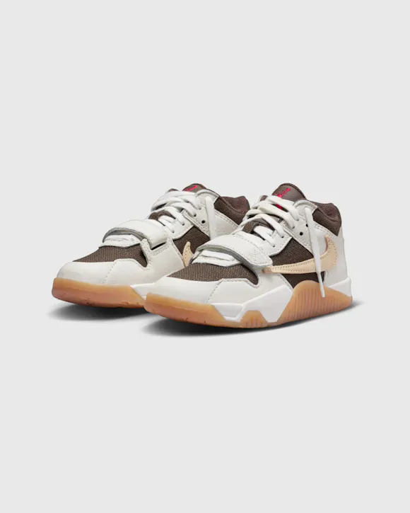 Travis Scott's signature shoe returns with a fresh look. Premium leather and durable canvas keep this Jumpman Jack on point. A reversed Swoosh logo, quick-to-secure strap, Cactus Jack branding and an oversized "Jack" on the sole add style worth showing off.
